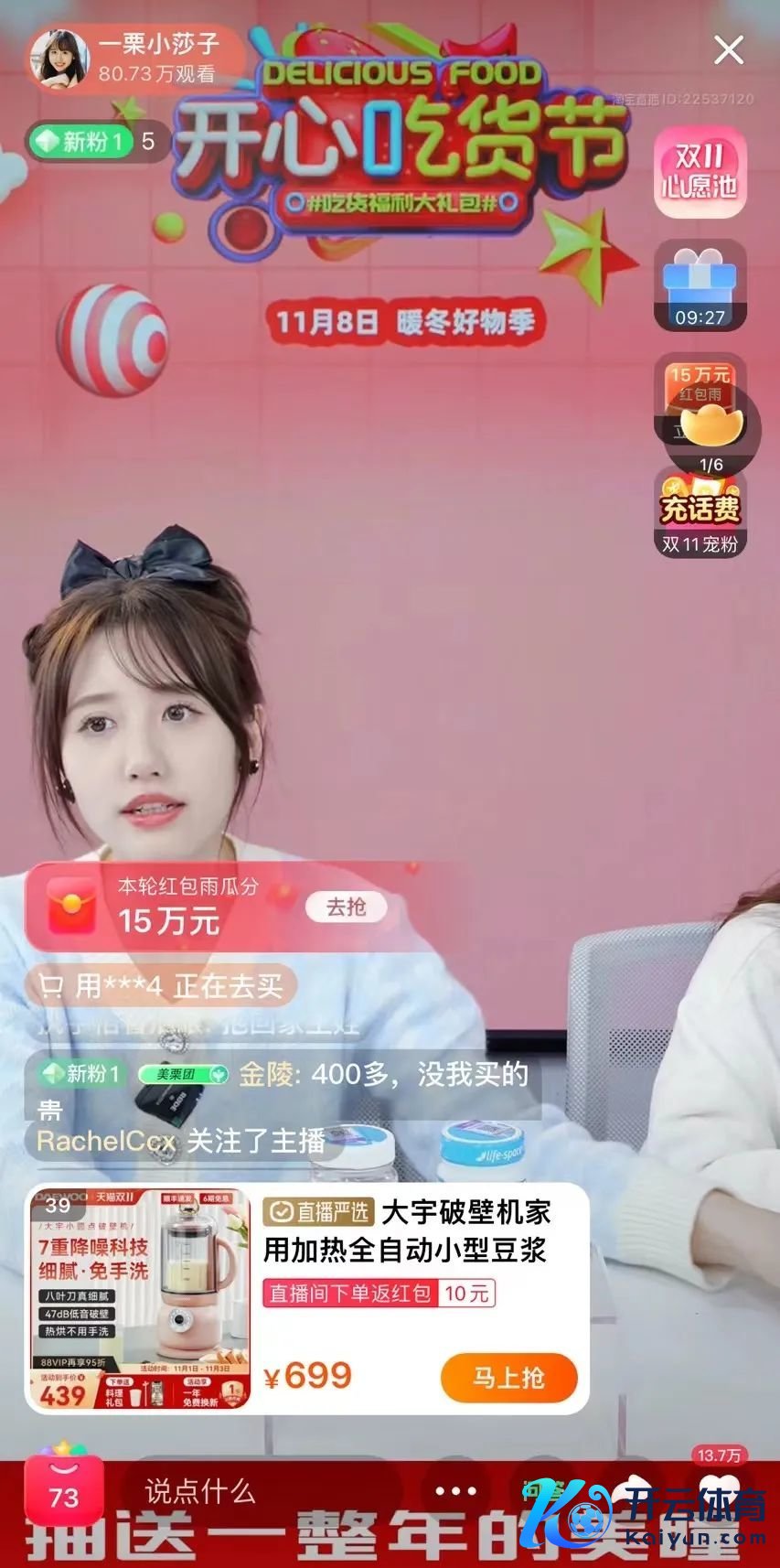 谦寻则在此次双11押注旗下的两大主播直播间:琦儿和蜜蜂惊喜社,分别在抖音和淘宝带货。