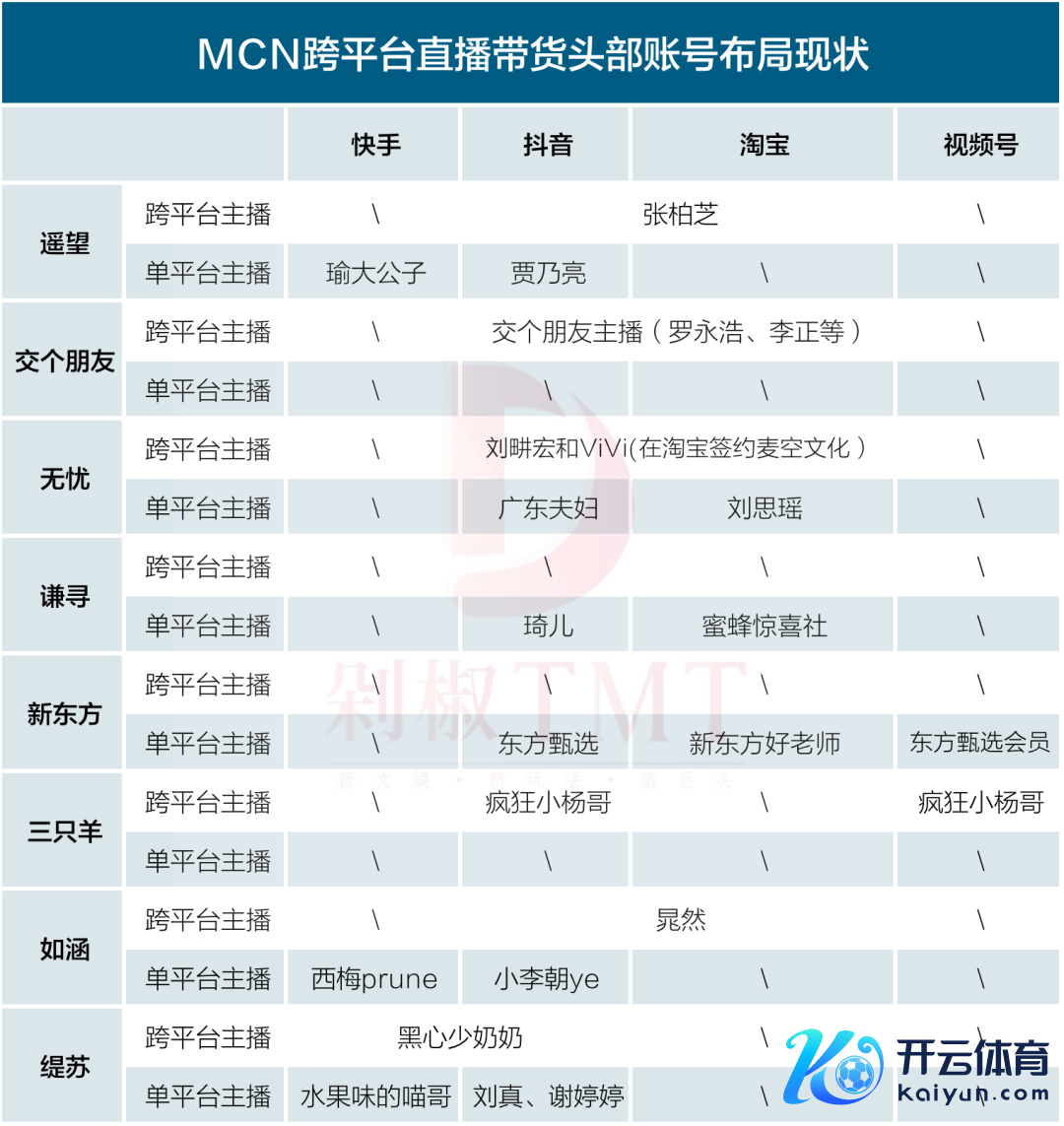 如今,MCN基于自身情况,产生了三种跨平台直播带货玩法。