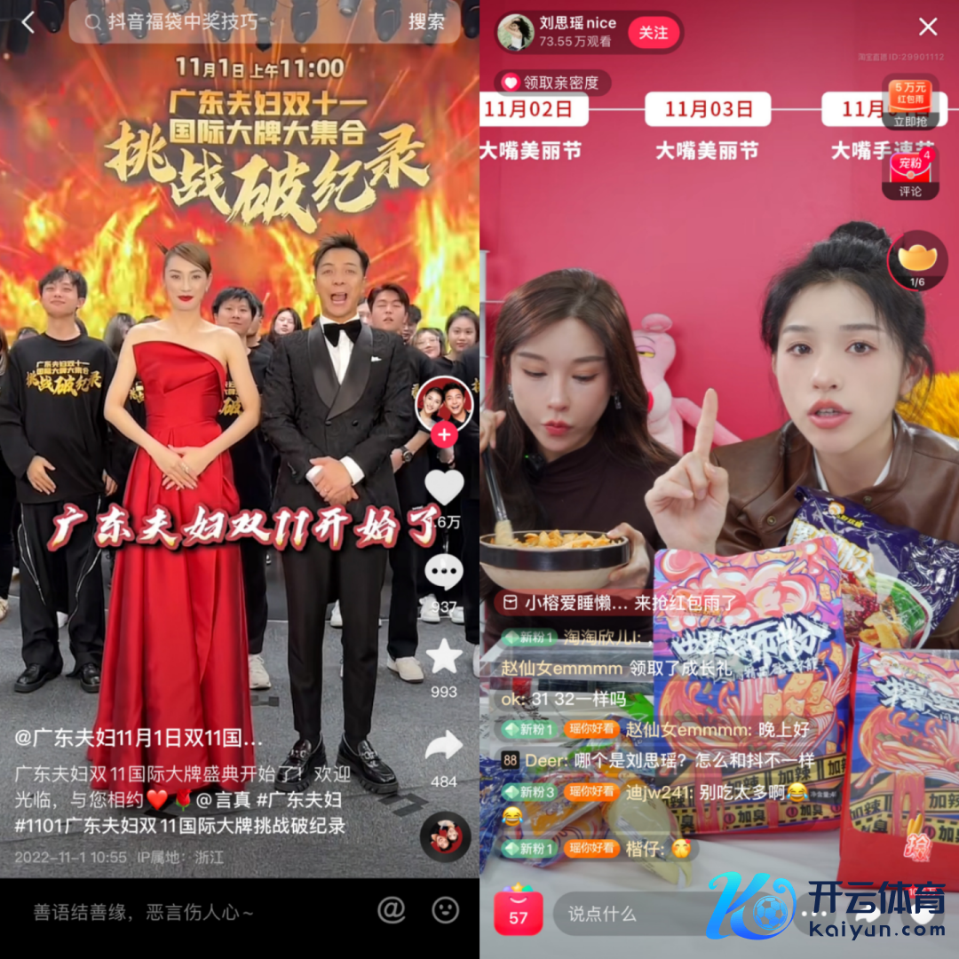 10月31日昔时,刘畊宏和爱妻ViVi还以抖音的直播间为主,跟着双11的左近,二东说念主双双入淘。ViVi的直播试水之后,11月9日,刘畊宏将会开启他的淘宝直播首秀。