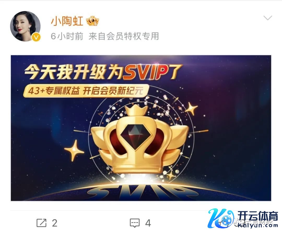 而陶虹的微博,今世界午发布了一条其成为微博SVIP的动态。