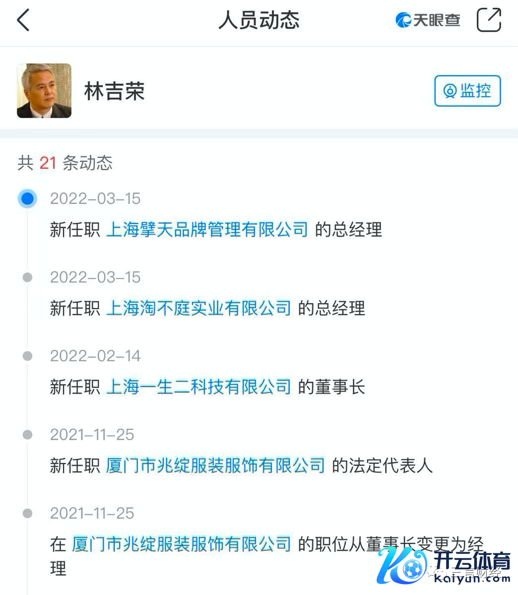 而张庭本年以来新任职了上海淘不庭实业有限公司的监事和上海擘天品牌处分有限公司的实行董事。