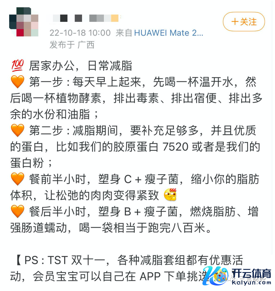 10月18日,一位网友发文称,TST双十一各式减脂套组都有优惠行为。