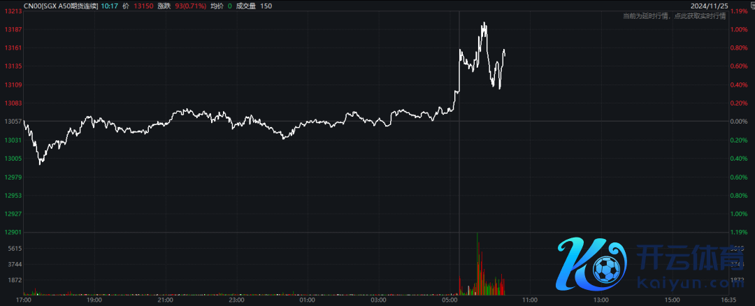 富时中国A50指数期货盘中大幅拉升,一度涨超1%,随后有所回落,当今涨幅仍有0.7%傍边。