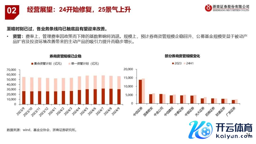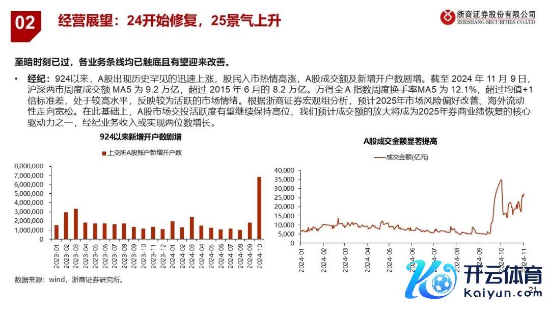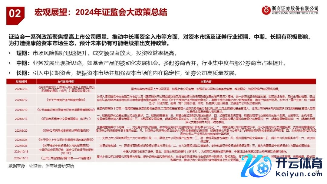 •宏不雅瞻望:2024年一系列战略聚焦提高上市公司质地、推动中永久资金入市等方面,对本钱商场及证券行业短期、中期、永久均有积极影响。为打造健康的本钱商场生态,揣度改日仍有可能赓续推出支柱战略。(1)短期:商场风险偏好马上普及,成交额显赫放大,投资收益率提高;(2)中期:业务发展出现新想路,如基金家具的被迫化发展契机。多起券商并吞,行业贴近度与部分券商市占率普及;(3)永久:引入中永久资金,提振本钱商场并加强本钱商场的内在褂讪性,券商高质地发展。