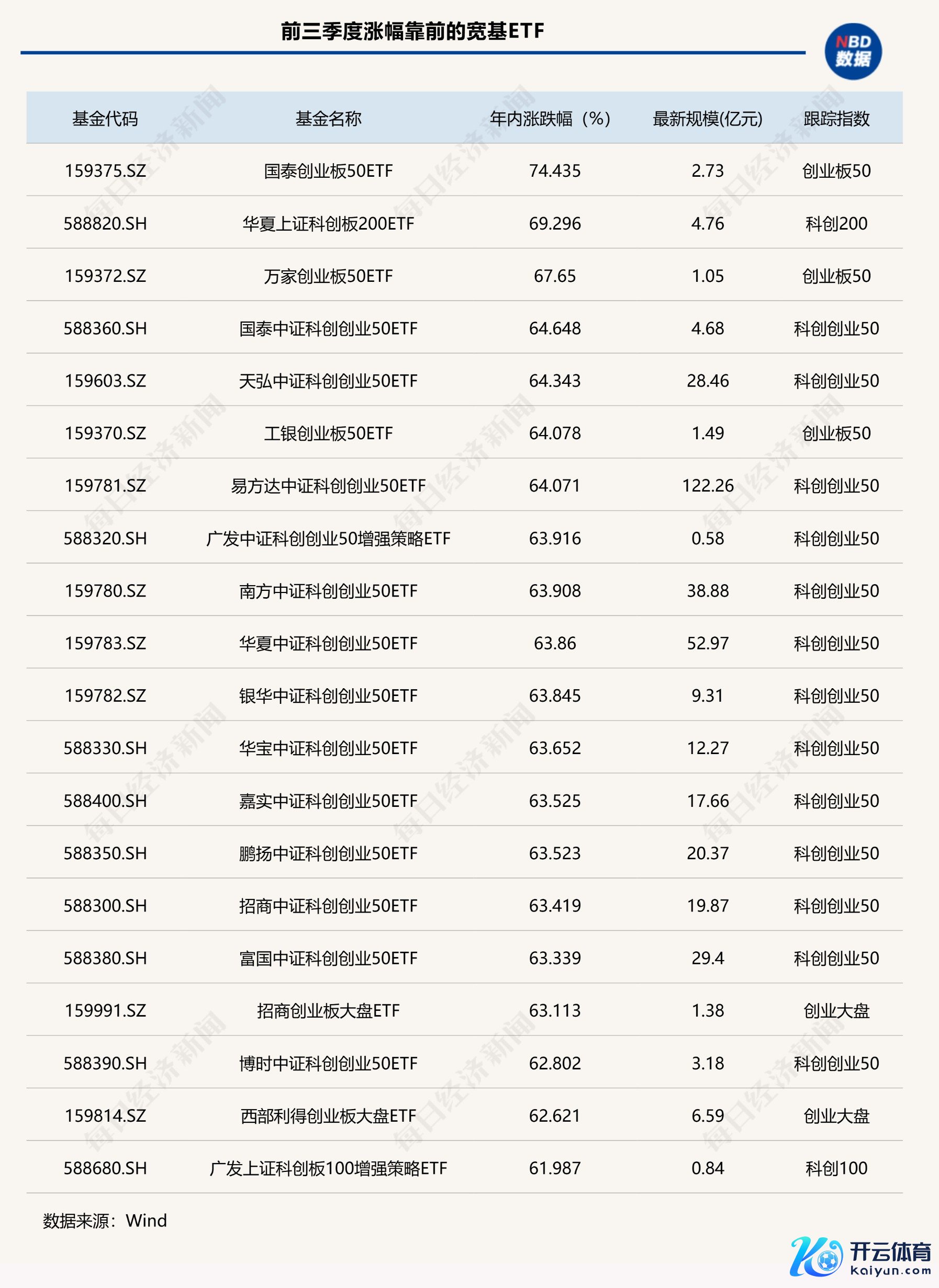 从单只家具来看,Wind数据走漏,限度9月30日,共有24只宽基ETF年内涨幅超60%。其中,国泰创业板50ETF以74.44%的涨幅领跑系数宽基ETF,中原上证科创板200ETF和万家创业板50ETF紧随后来,前三季度辨认大涨69.3%和67.65%。