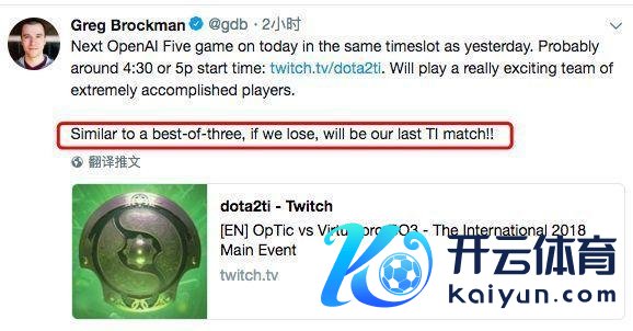 OpenAI Dota团队负责东谈主Greg Brockman默示,凭证三打两胜的规章,如若此次AI输掉,那即是他们临了的一次比赛了。