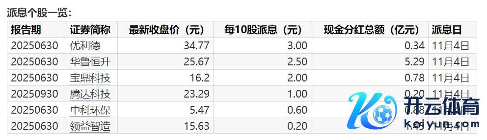 A股分成派息转增一览(11月3日):6股本日股权登记A股分成派息转增一览(11月3日):6股本日股权登记