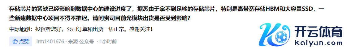 中际旭创:公司订单和出货一切平素中际旭创:公司订单和出货一切平素