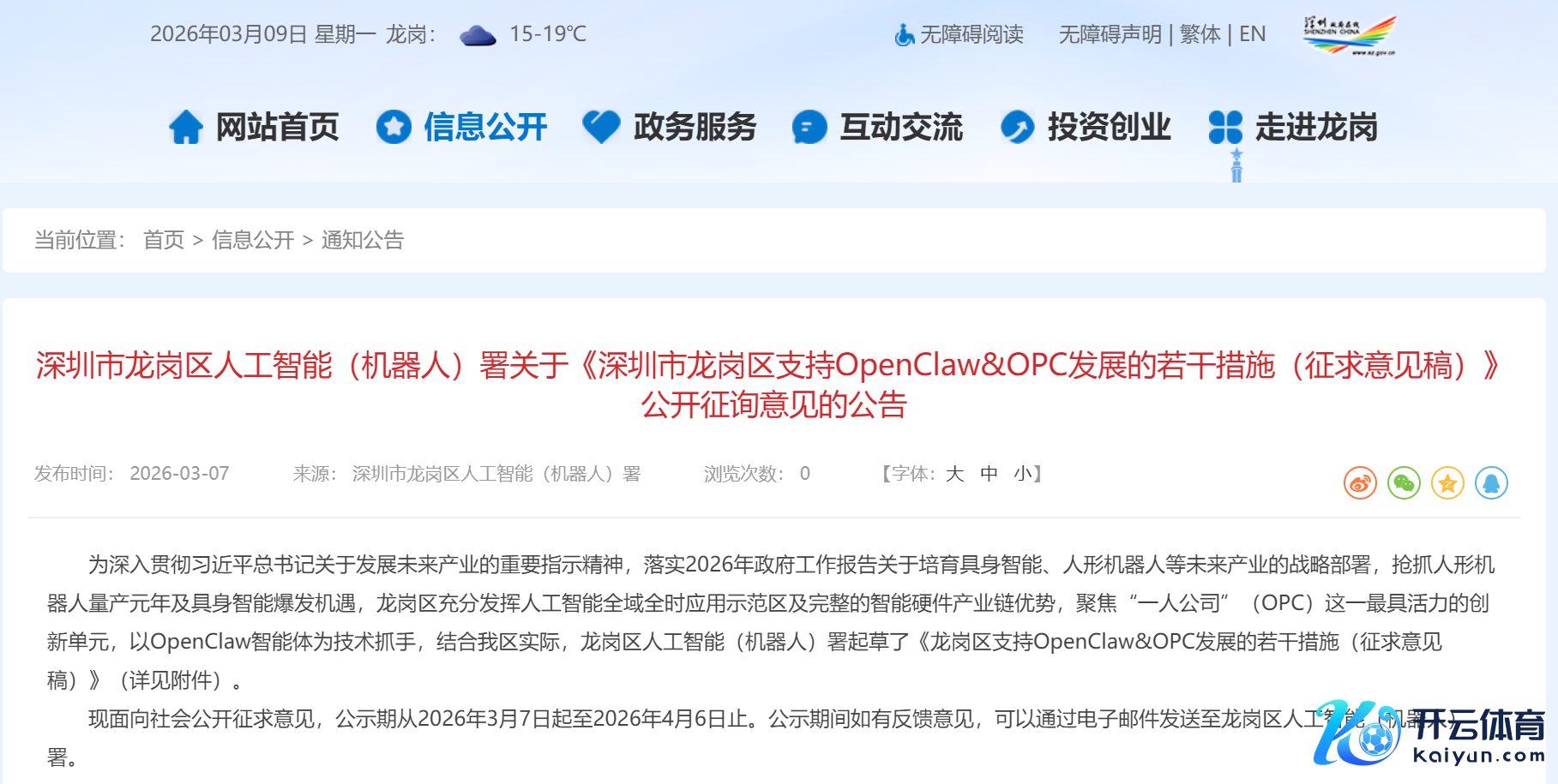 音尘面上,日前,深圳市龙岗区东谈主工智能(机器东谈主)署发布对于《深圳市龙岗区营救OpenClaw&OPC发展的多少步伐(征求意见稿)》公开考虑意见的公告,并面向社会公开征求意见。涵盖OpenClaw免费部署与诞生营救、OpenClaw专属数据工作营救、OpenClaw类智能体器具采购营救、OpenClaw类智能体器具欺诈示范营救、AIGC模子调用营救、算力与场景欺诈营救、东谈主才与创业空间营救、基金融资营救、居品出海营救、赛事奖励营救等十大标的,旨在深远现实“东谈主工智能+”行为,淘气栽培产业发展新业态新步地,构建产业蚁合、革命活跃的东谈主工智能OPC创业生态。